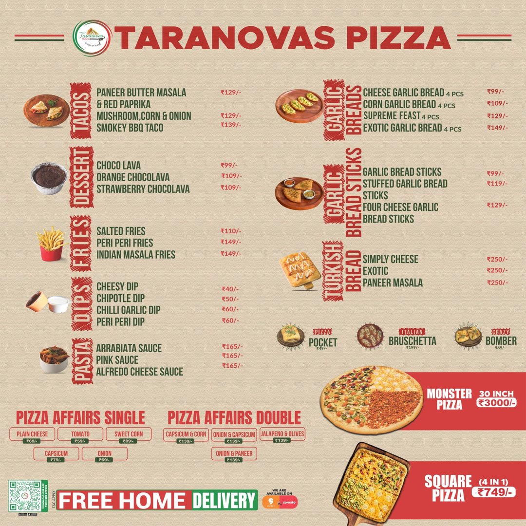 At Taranovas Pizza, we are passionate about pizza and dedicated to delivering the best dining experience to our customers. We take pride in our delicious, freshly made pizzas, crafted with the finest ingredients and prepared with love by our skilled chefs.